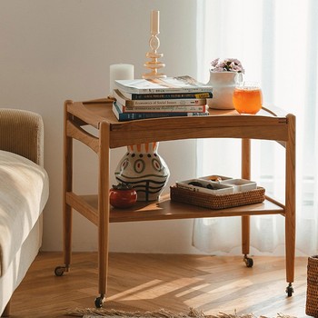 ארון עץ דובדבן מוצק nordic ארון אחסון נייד עגלת קטן עם גלגלים שולחן עבודה בצד גלגלים