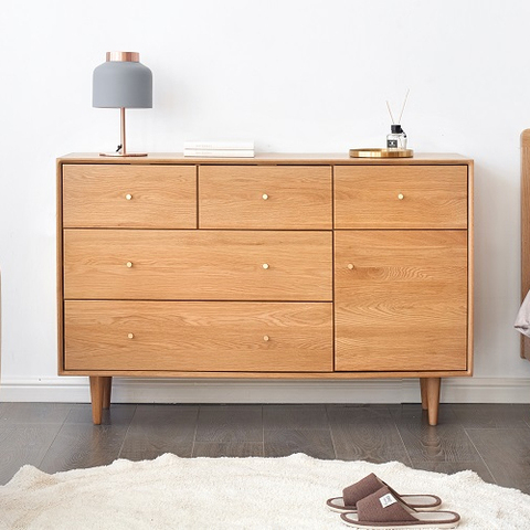 Mueble de madera maciza de roble de estilo nórdico, 7 cajones de almacenamiento con cajones, A3032
