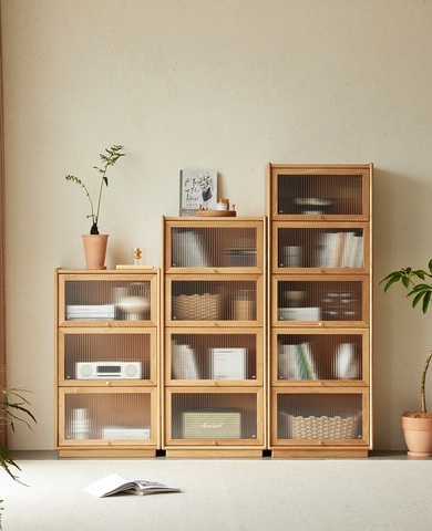 M2101 Muebles para el hogar Gabinete lateral de almacenamiento de madera Gabinete de madera con puerta de vidrio abatible y cajón