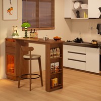 ไม้เนื้อแข็งโต๊ะเคาน์เตอร์บาร์ระเบียงห้องนั่งเล่นส่วนต่อขยายขนาดเล็กของเคาน์เตอร์บาร์ขาสูงตู้ด้านข้าง